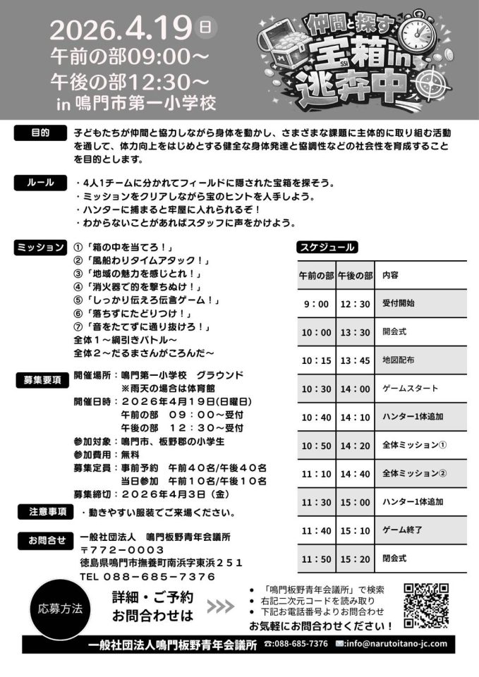 詳細・ご予約・お問いあわせは鳴門板野青年会議所まで。